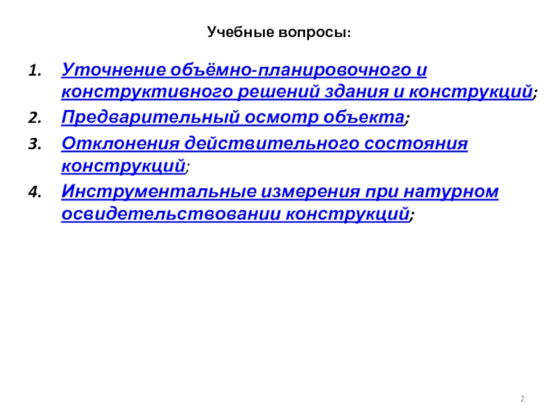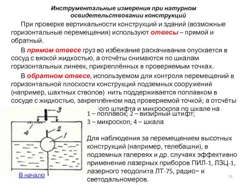 Инструментальные измерения при натурном освидетельствовании конструкций;