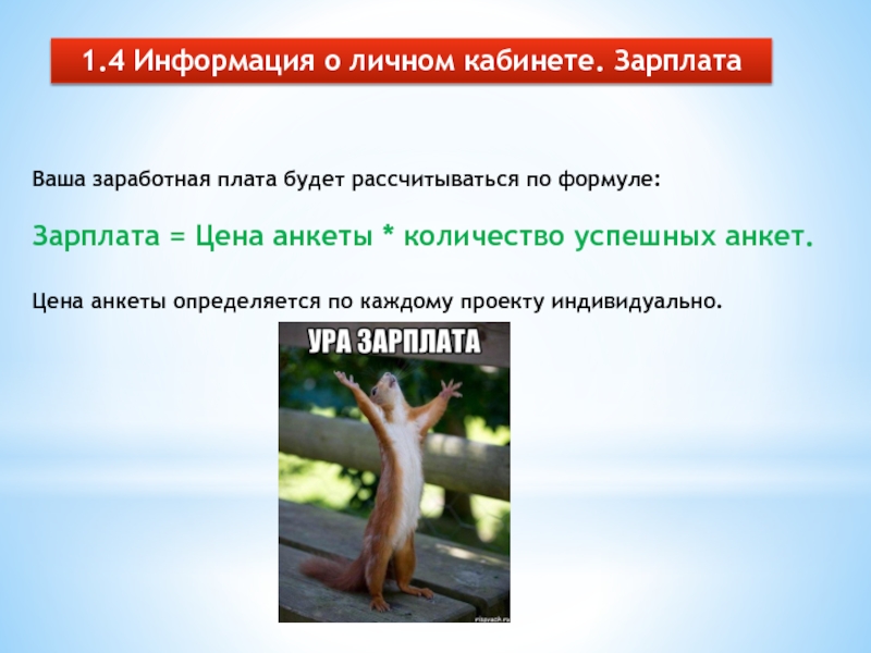 Слайд 201.4 Информация о личном кабинете. Зарплата