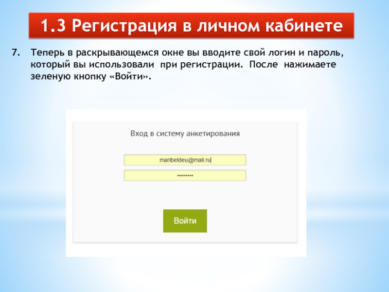логин и пароль, который вы использовали при регистрации. После нажимаете зеленую кнопку «Войти».