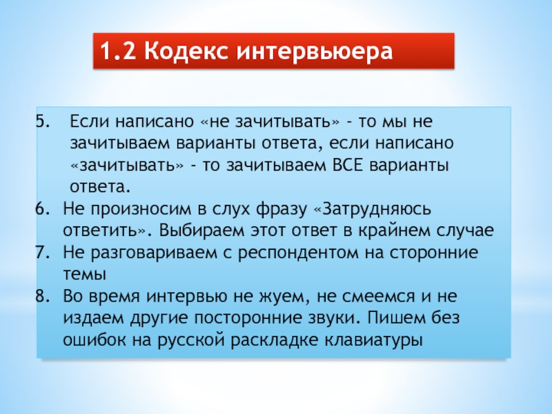 Во время интервью не жуем, не смеемся и не издаем другие посторонние звуки. Пишем без ошибок на русской раскладке клавиатуры
