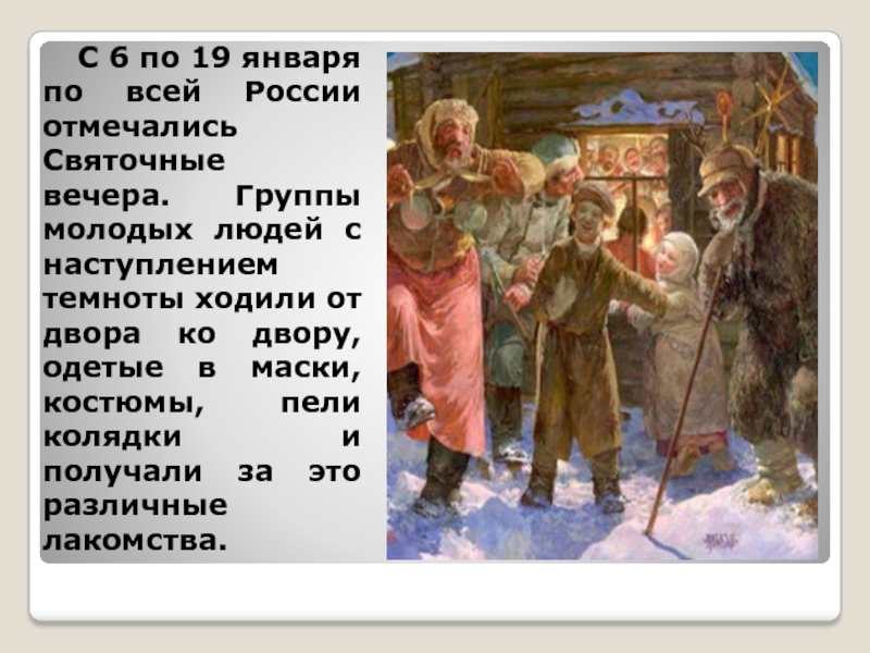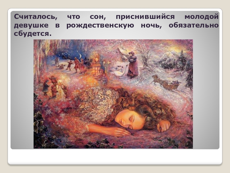 Слайд 34Считалось, что сон, приснившийся молодой девушке в рождественскую ночь, обязательно сбудется.