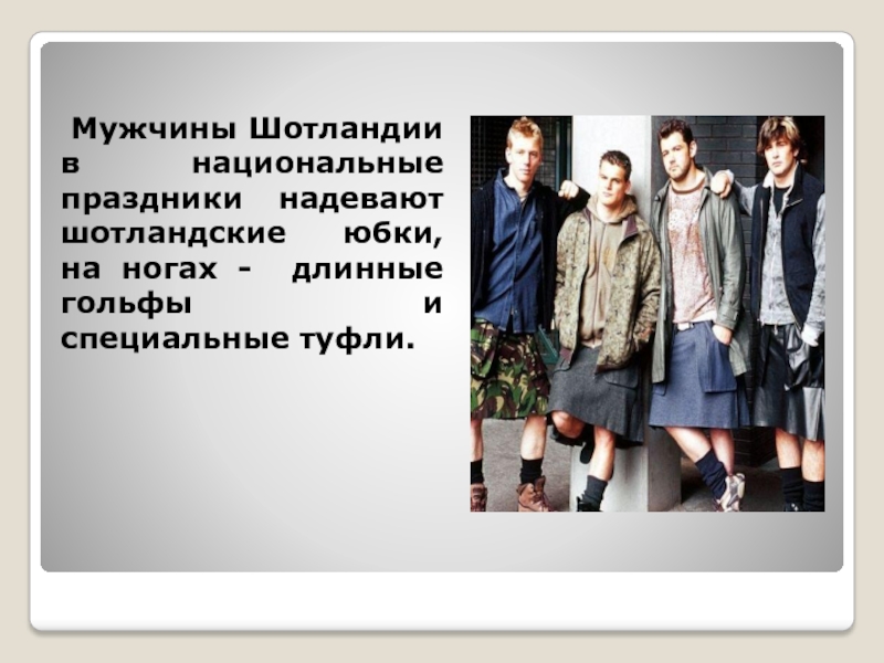 Мужчины Шотландии в национальные праздники надевают шотландские юбки, на