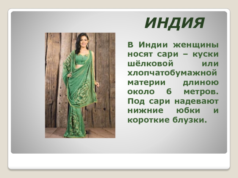 длиною около 6 метров. Под сари надевают нижние юбки и короткие блузки.