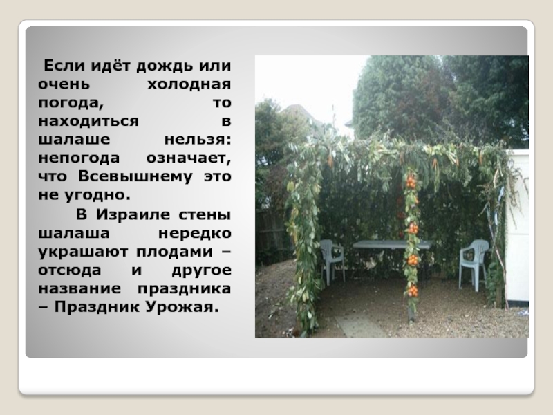 в шалаше нельзя: непогода означает, что Всевышнему это не угодно.
