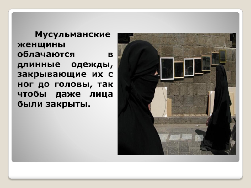 Мусульманские женщины облачаются в длинные одежды, закрывающие их с