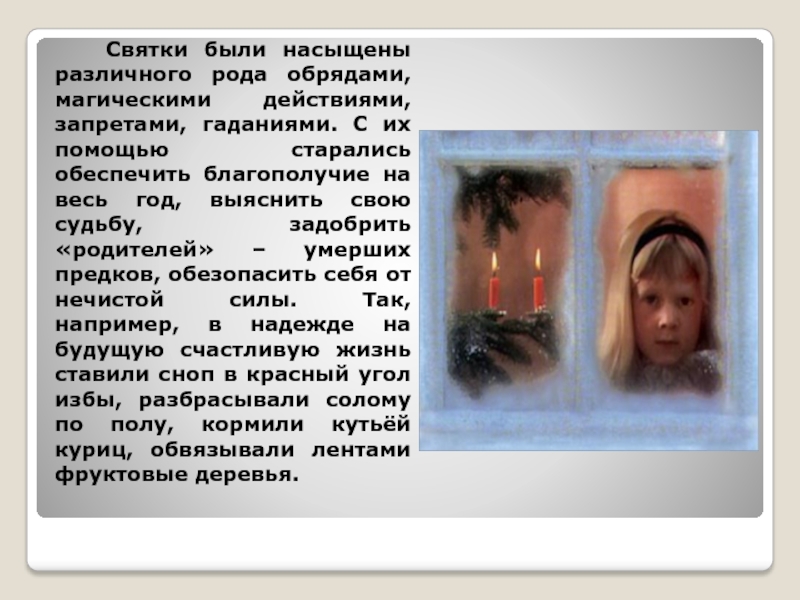 Святки были насыщены различного рода обрядами, магическими действиями,