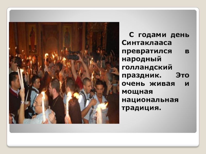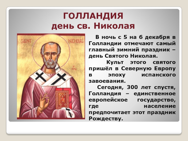 Сегодня, 300 лет спустя, Голландия – единственное европейское государство, где население предпочитает этот праздник Рождеству.