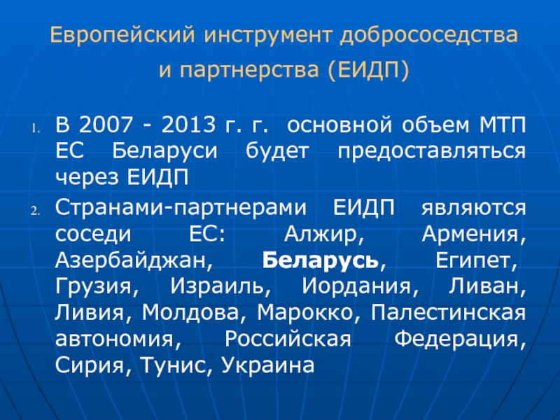 г. основной объем МТП ЕС Беларуси будет предоставляться через ЕИДП
