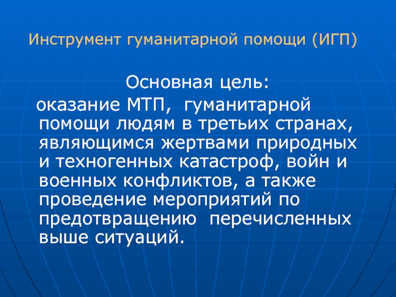 Слайд 20Инструмент гуманитарной помощи (ИГП)
