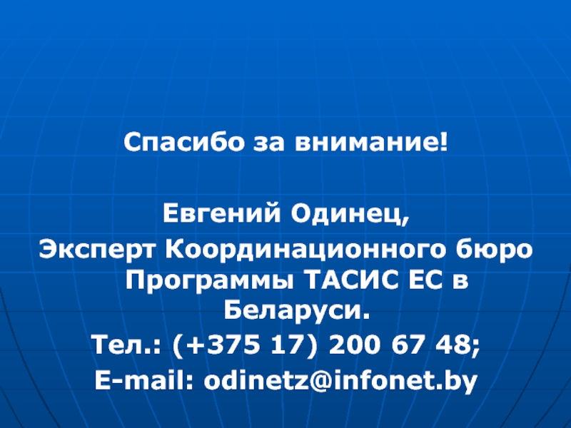 Эксперт Координационного бюро Программы ТАСИС ЕС в Беларуси.