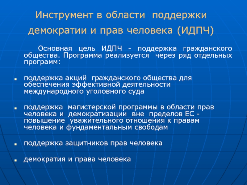 Слайд 22Инструмент в области поддержки демократии и прав человека (ИДПЧ)