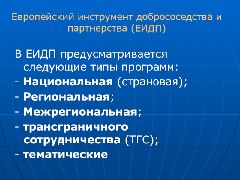 Слайд 8Европейский инструмент добрососедства и партнерства (ЕИДП)