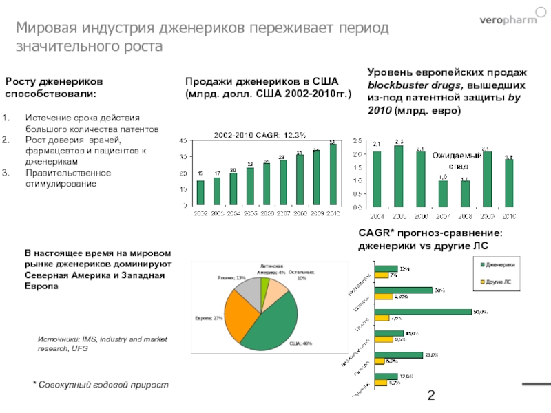 CAGR* прогноз-сравнение: дженерики vs другие ЛС