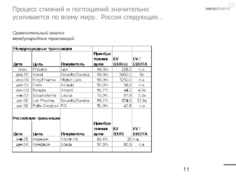 Таким образом, среди дженериковых компаний по всему миру существует тенденция к слиянию и поглощению (глобализации)