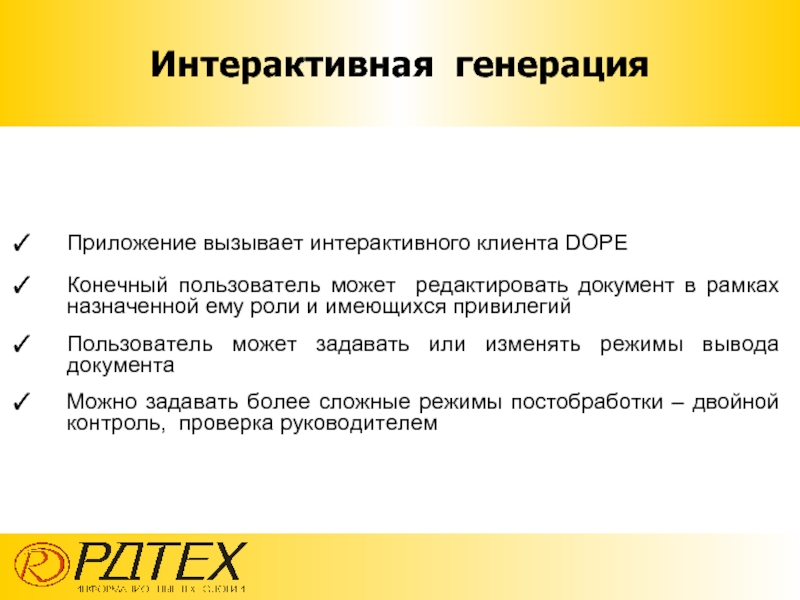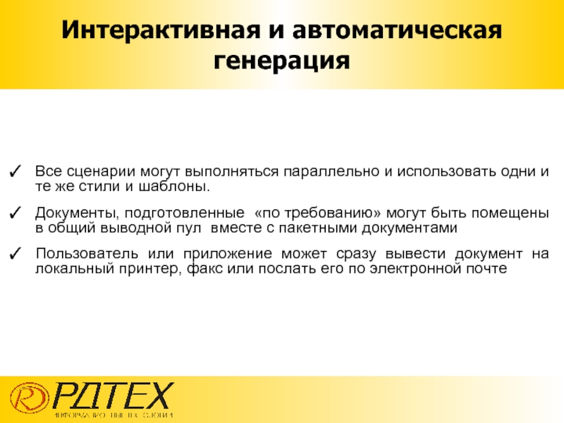 Выводные форматы: AFP для массовой печати документов, PDF/A или TIFF для архивирования, PCL для локальной печати и PDF для почты