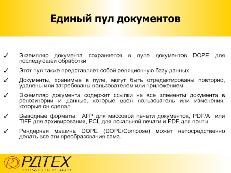 Экземпляр документа сохраняется в пуле документов DOPE для последующей