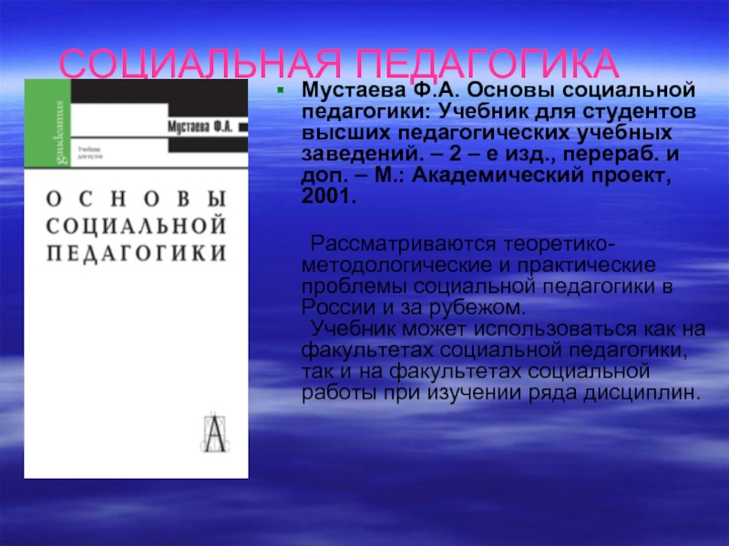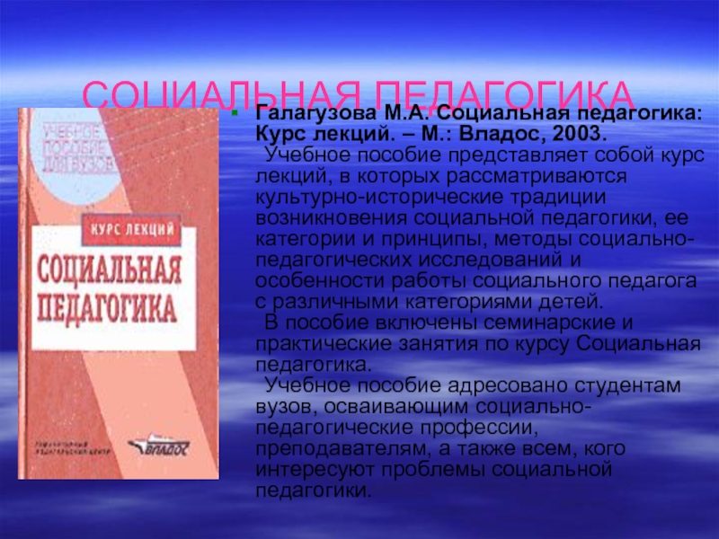 социальной педагогики.- М.: Гардарики, 2003.