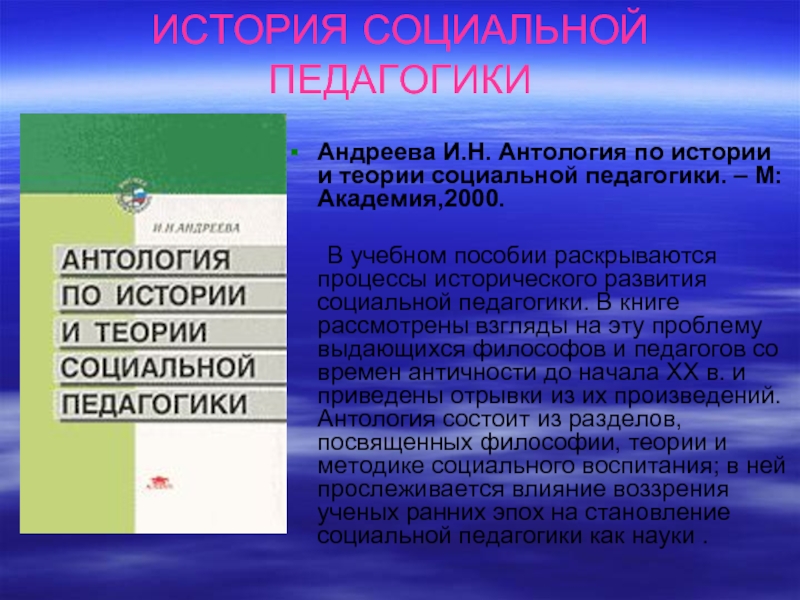 Андреева И.Н. Антология по истории и теории социальной педагогики.