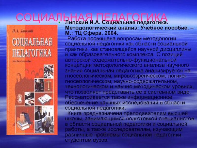 Липский И.А. Социальная педагогика. Методологический анализ: Учебное пособие. – М.: