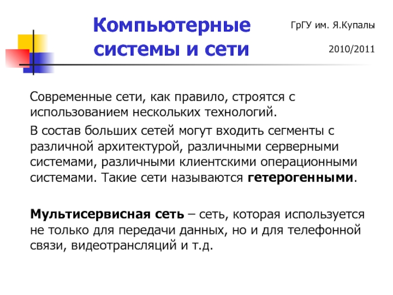 больших сетей могут входить сегменты с различной архитектурой, различными серверными системами, различными клиентскими операционными системами. Такие сети называются гетерогенными.