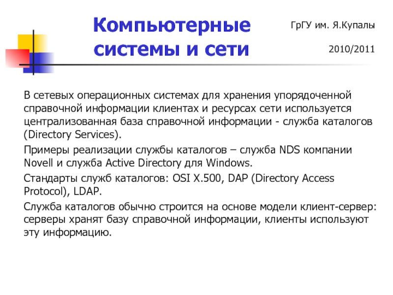 Стандарты служб каталогов: OSI X.500, DAP (Directory Access Protocol), LDAP.