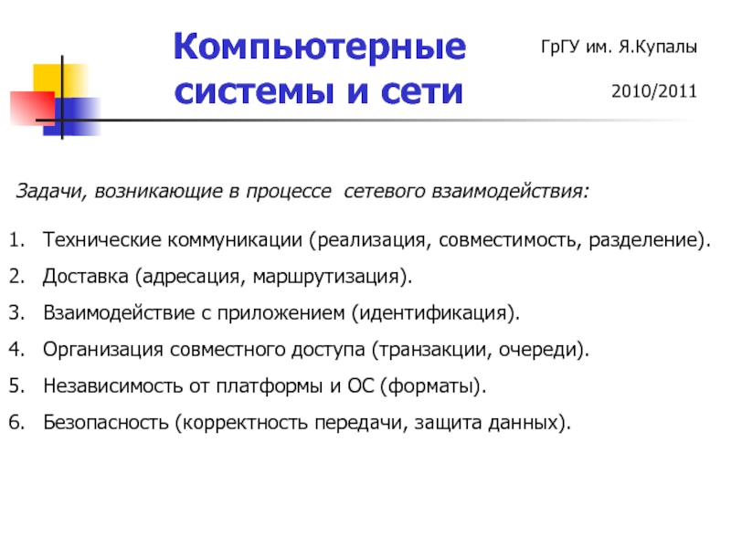 Слайд 4Задачи, возникающие в процессе сетевого взаимодействия: