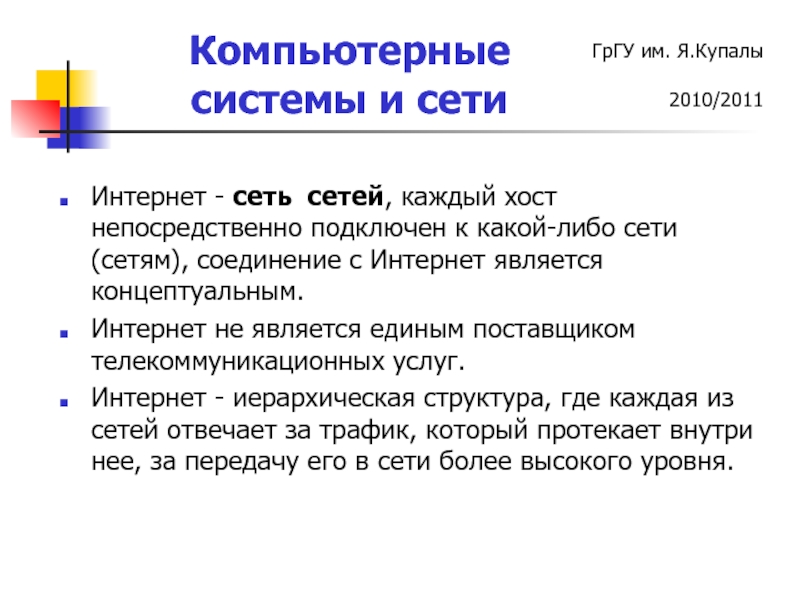 Слайд 28Интернет - сеть сетей, каждый хост непосредственно подключен к какой-либо сети