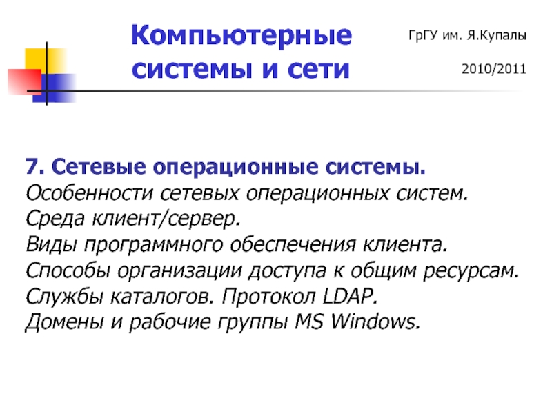 Особенности сетевых операционных систем. Среда клиент/сервер.