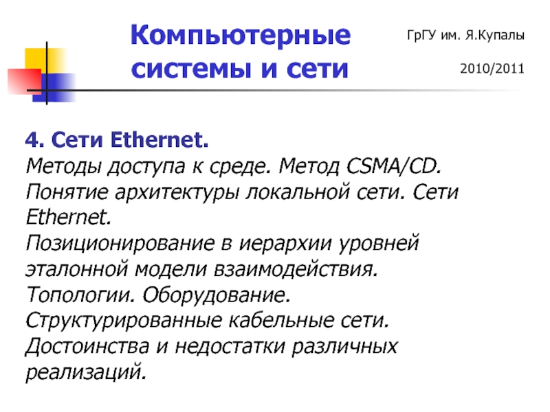 Методы доступа к среде. Метод CSMA/СD. Понятие архитектуры локальной