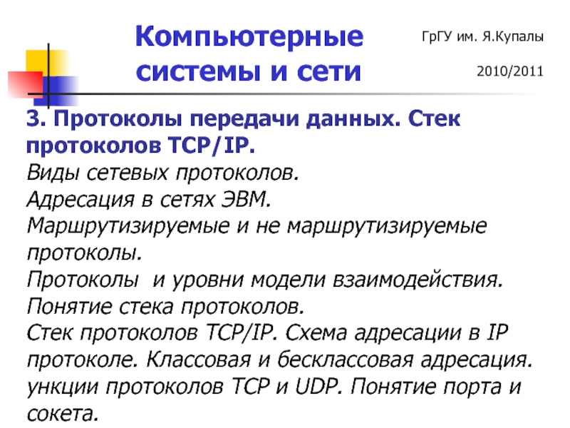 3. Протоколы передачи данных. Стек протоколов TCP/IP.