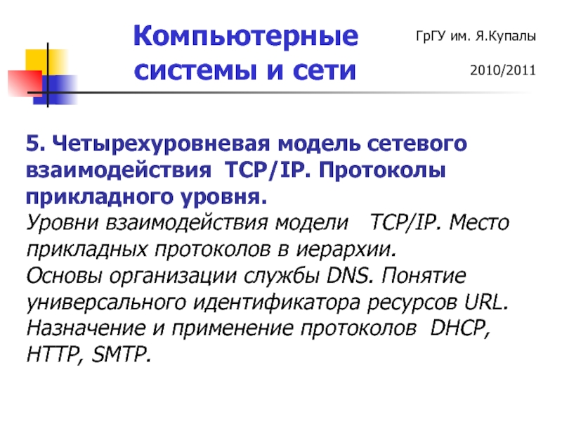 Основы организации службы DNS. Понятие универсального идентификатора ресурсов URL. Назначение и применение протоколов DHCP, HTTP, SMTP.