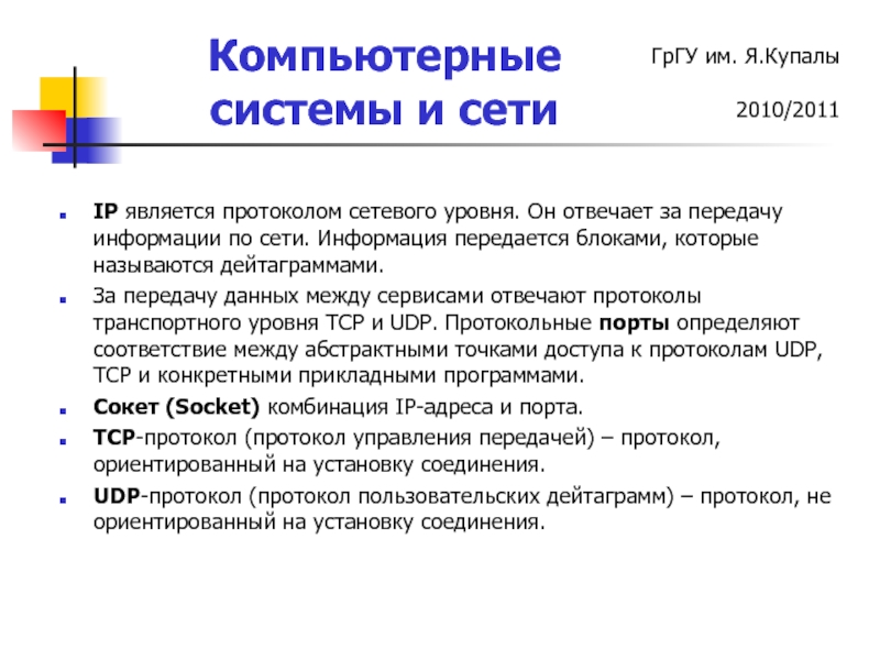 ункции протоколов TCP и UDP. Понятие порта и сокета.