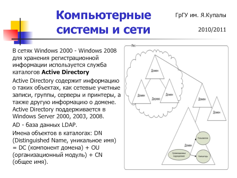 Слайд 35В сетях Windows 2000 - Windows 2008 для хранения регистрационной информации