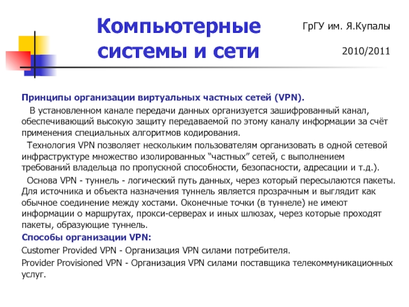 Слайд 31Принципы организации виртуальных частных сетей (VPN).
