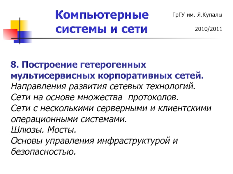 8. Построение гетерогенных мультисервисных корпоративных сетей. Направления развития сетевых технологий.