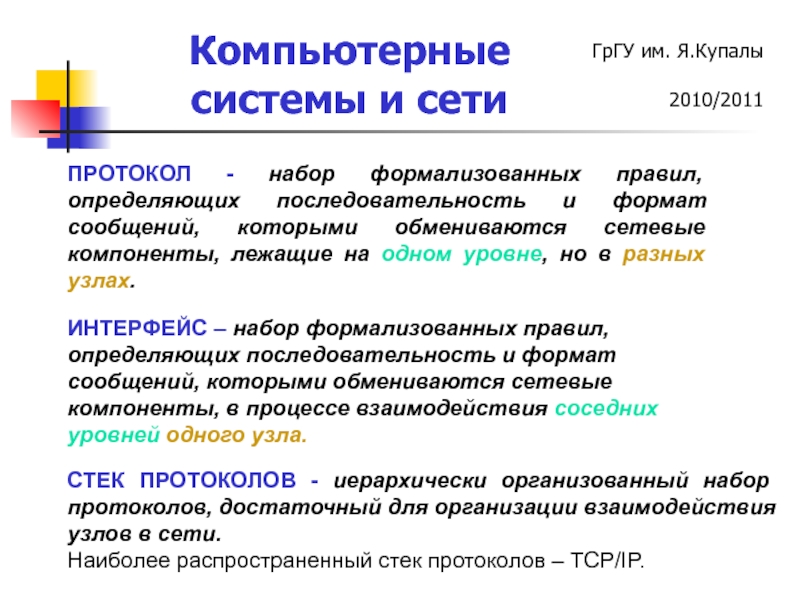 Слайд 11ПРОТОКОЛ - набор формализованных правил, определяющих последовательность и формат сообщений, которыми