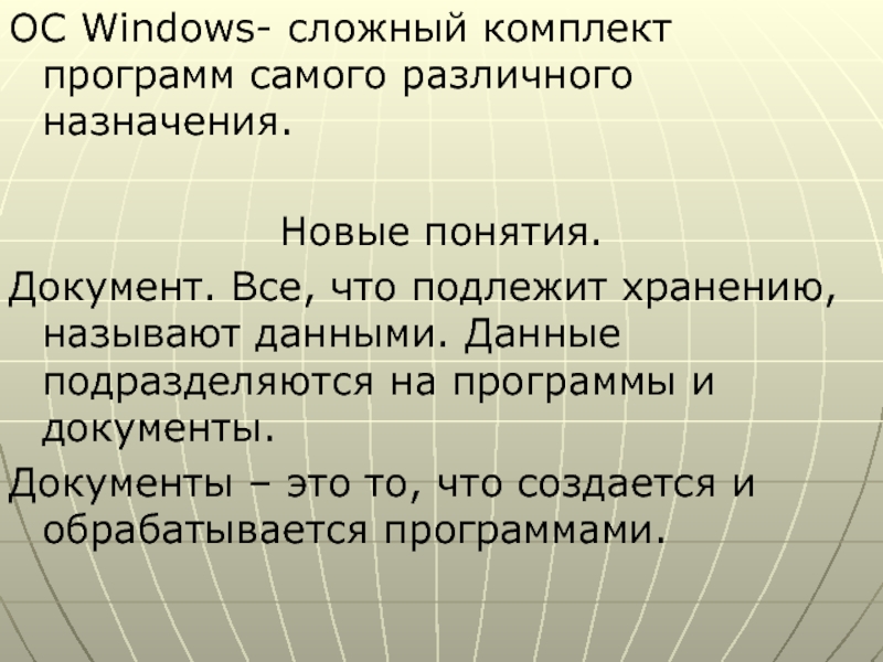 Слайд 2OC Windows- сложный комплект программ самого различного назначения.