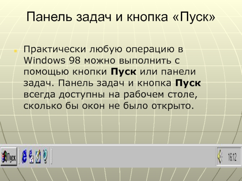 Слайд 6Панель задач и кнопка «Пуск»