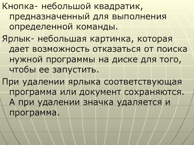 Слайд 5Кнопка- небольшой квадратик, предназначенный для выполнения определенной команды.