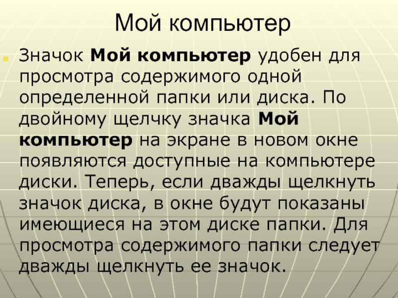 Значок Мой компьютер удобен для просмотра содержимого одной определенной папки