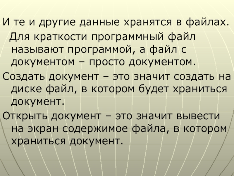 программный файл называют программой, а файл с документом – просто документом.