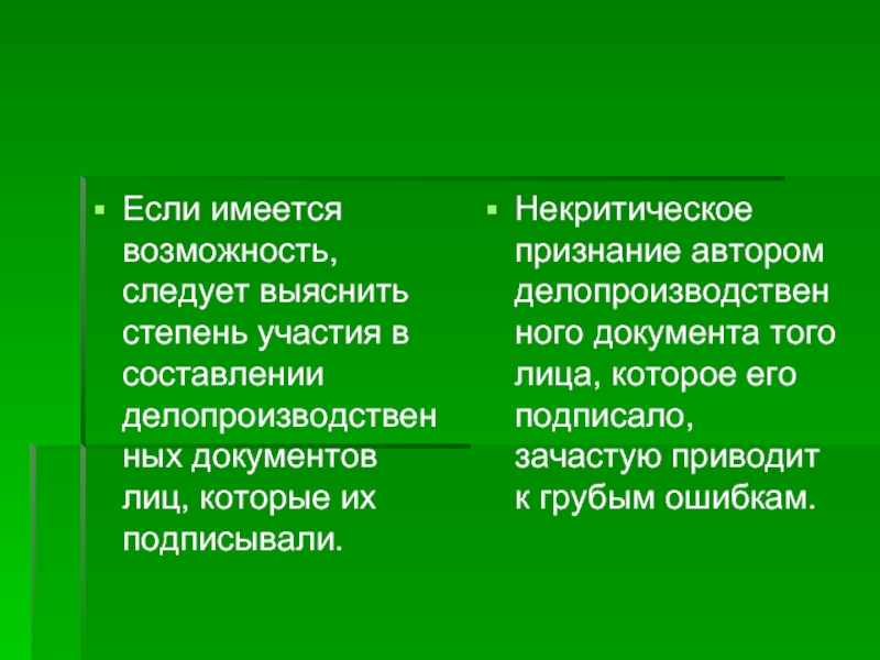 Некритическое признание автором делопроизводственного документа того лица, которое его подписало, зачастую приводит к грубым ошибкам.