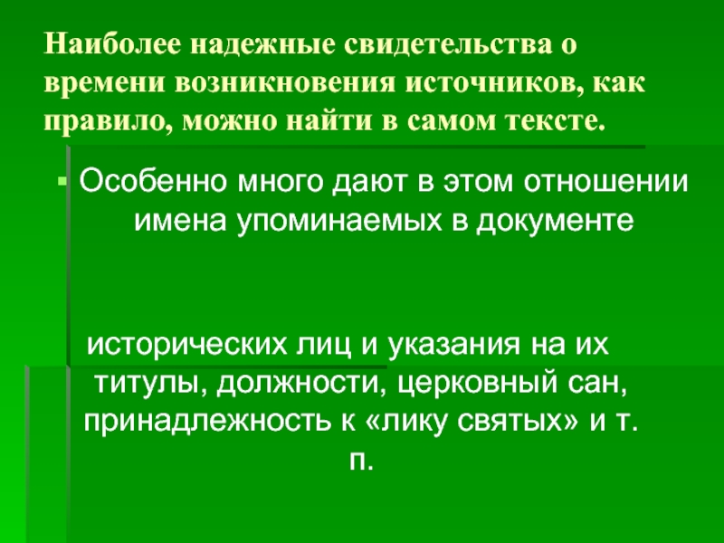 2. Время возникновения исторического источника может быть установлено по упоминаемому в нем событию.