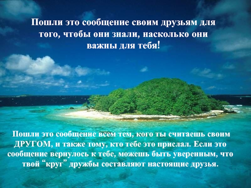 Пошли это сообщение своим друзьям для того, чтобы они знали, насколько они важны для тебя!