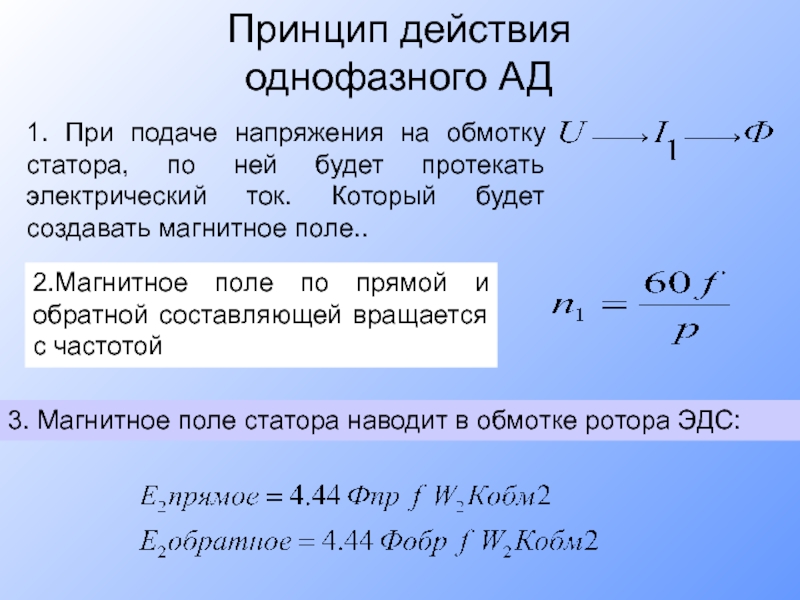 1. При подаче напряжения на обмотку статора, по ней будет протекать электрический ток. Который будет создавать магнитное поле..