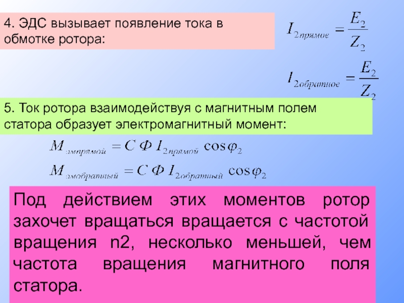 3. Магнитное поле статора наводит в обмотке ротора ЭДС: