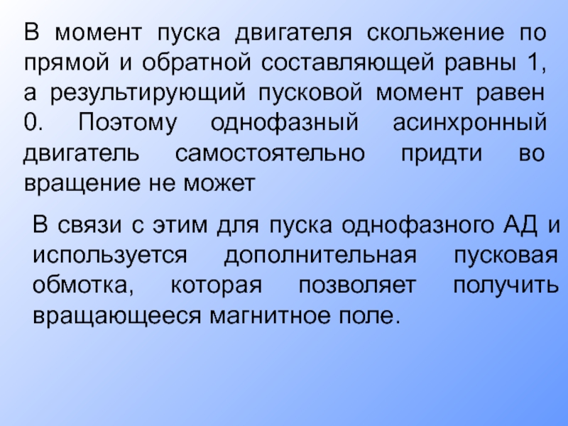 4. Почему ондофазный асинхронный двигатель самостоятельно не может придти во вращение?