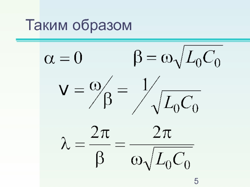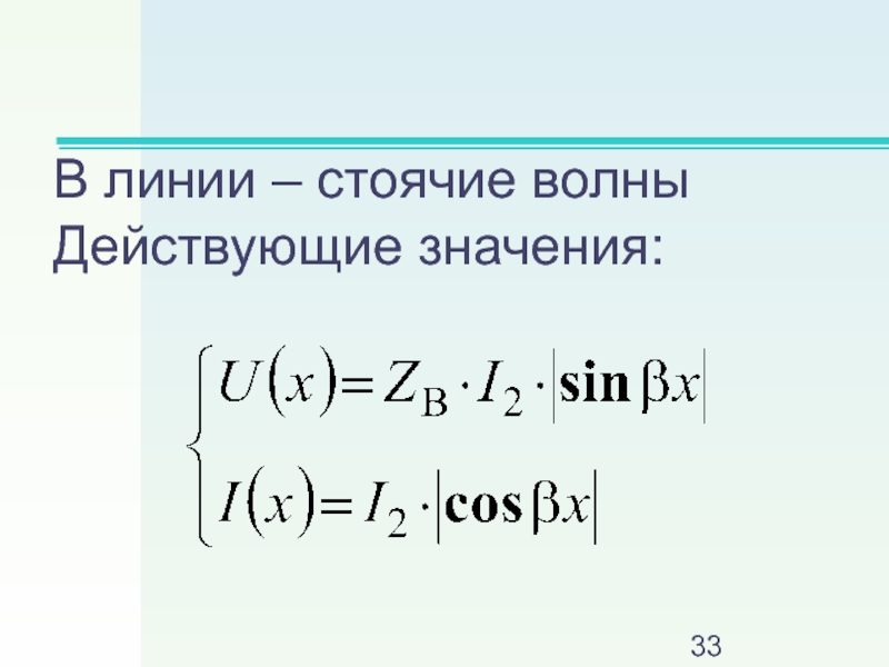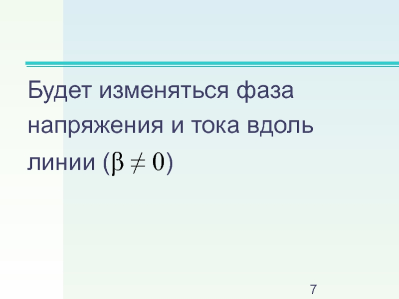 Слайд 7Будет изменяться фаза напряжения и тока вдоль линии (β ≠ 0)