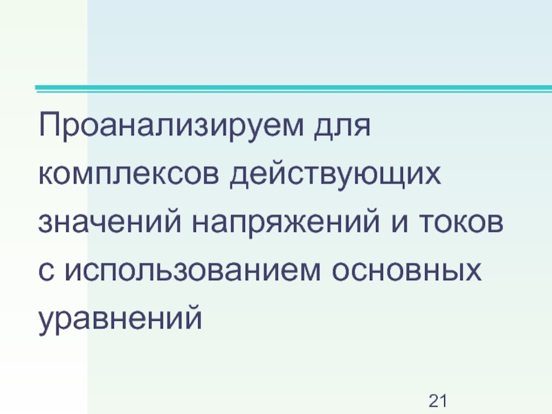 Слайд 21Проанализируем для комплексов действующих значений напряжений и токов с использованием основных