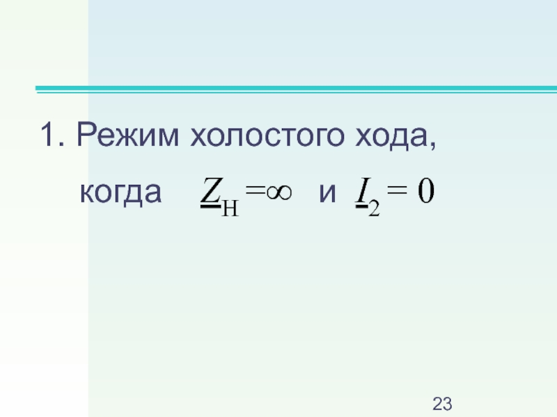 Слайд 231. Режим холостого хода, когда ZН =∞ и I2